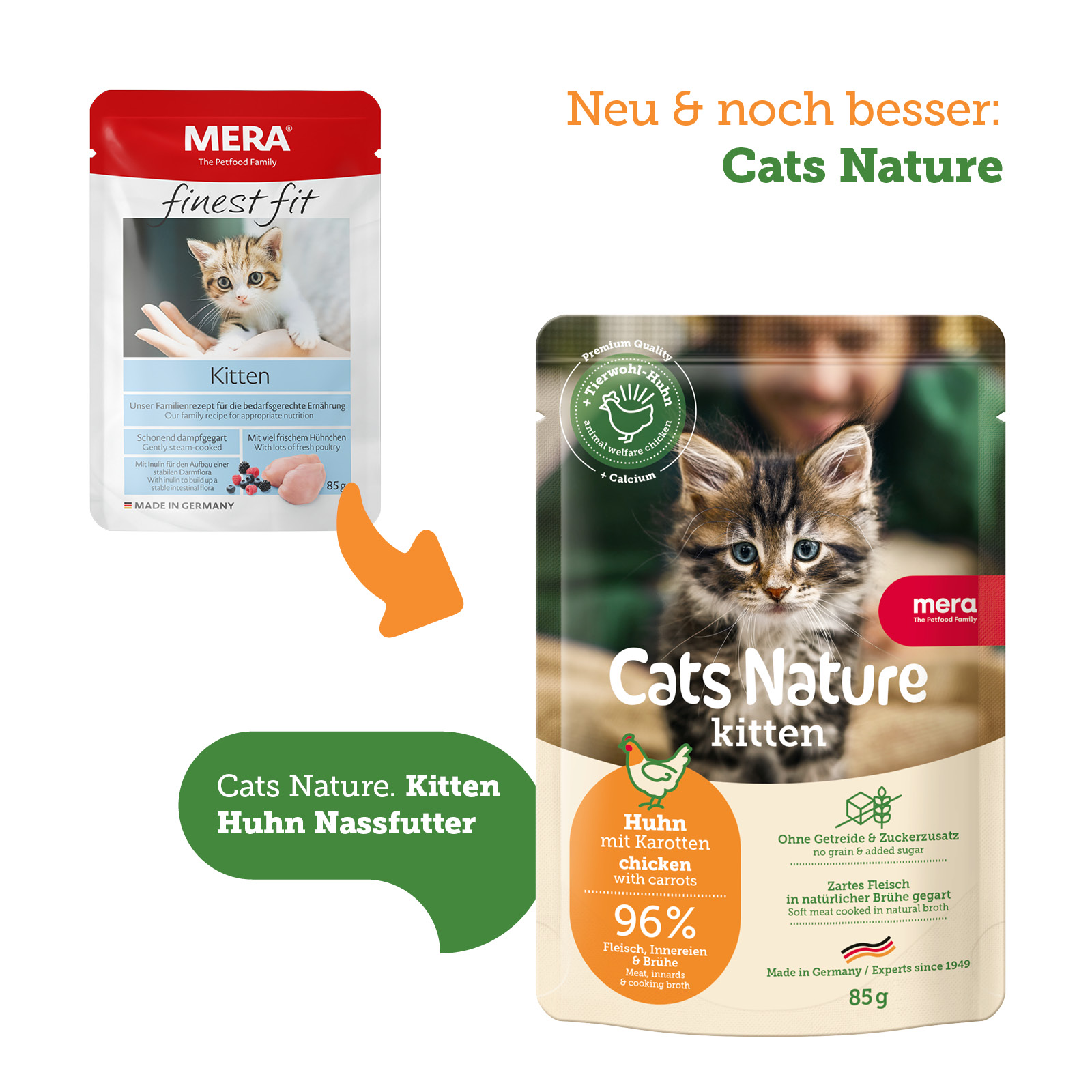 ...das mein Kitten zuverlässig frisst (und ich habe EINIGE probiert). Werde wohl auch später für adulte Katzen das MERA Futter beibehalten (habe wahrscheinlich eh keine Wahl :D)