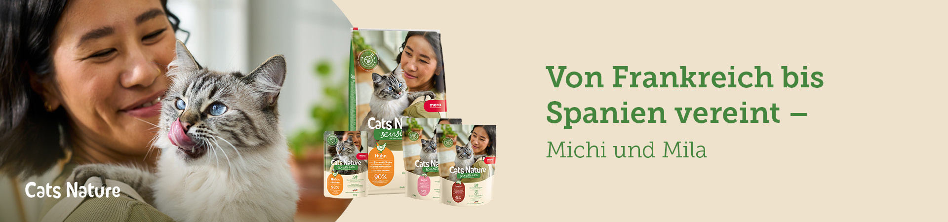 Mila ist eine kleine Feinschmeckerin mit einem sensiblen Magen. Damit sie alles bekommt, was sie für ein gesundes und glückliches Katzenleben braucht, füttert Mela Cats Nature Sensitive. Die innovative und besonders leicht verdauliche Rezeptur mit nur einer tierischen Proteinquelle wie Insekt, Huhn oder Lachs, verfeinert mit Kamillenblüten und Flohsamenschalen, ist perfekt abgestimmt auf die besonderen Bedürfnisse empfindlicher Katzen ab einem Jahr.