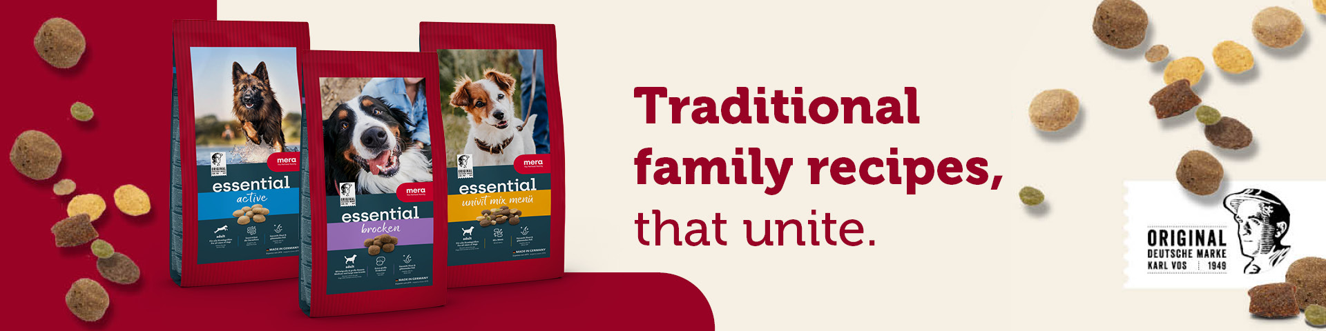 The relationship between humans and animals has been the focus of mera since day one. That’s why with essential we want to help create a harmonious relationship between you and your dog.